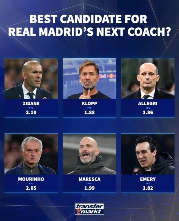德转列皇马新帅6位潜在候选人:穆里尼奥、齐达内、克洛普在列